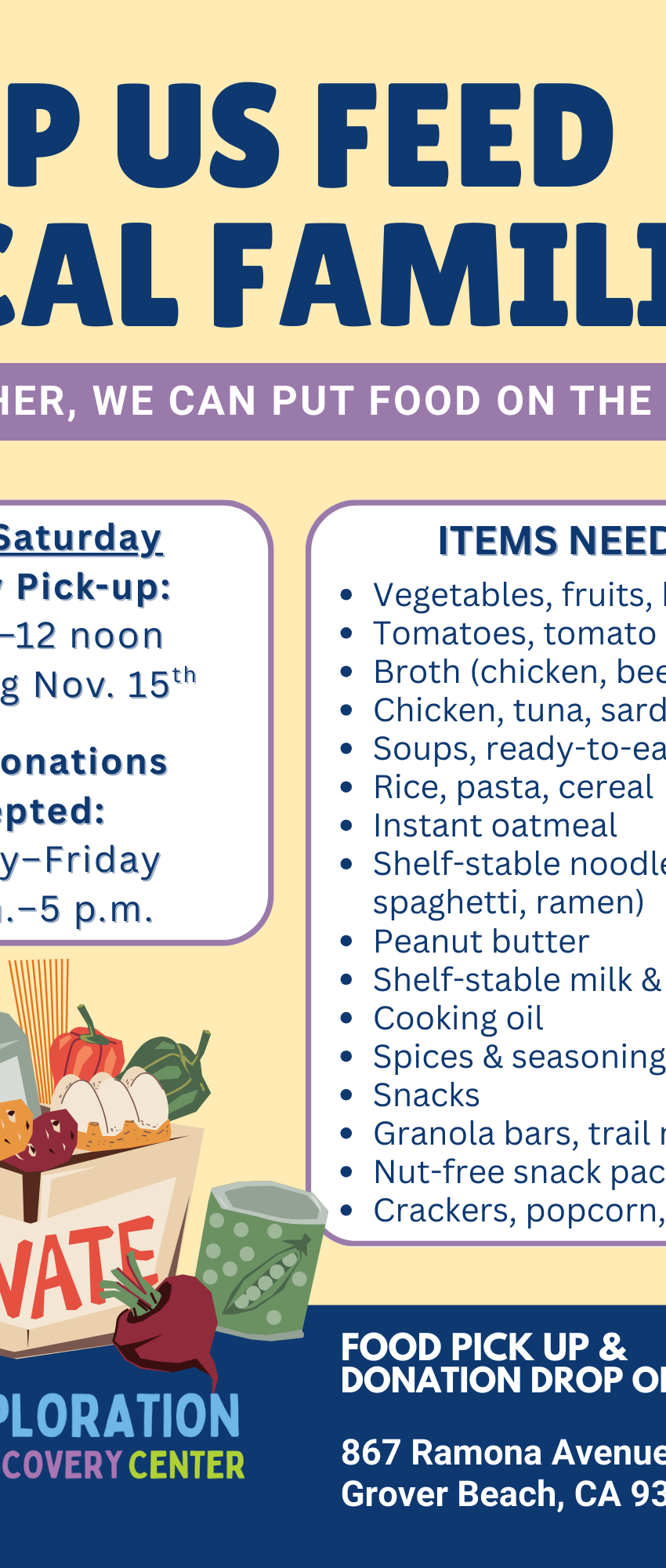 We’re excited to share that the Exploration Discovery Center has launched a new Food Pantry Program to support families in our community. Every Saturday from 10:00 AM to 12:00 PM, we offer free grocery pickup—no questions asked. If you or someone you know could use a little extra help, please […]